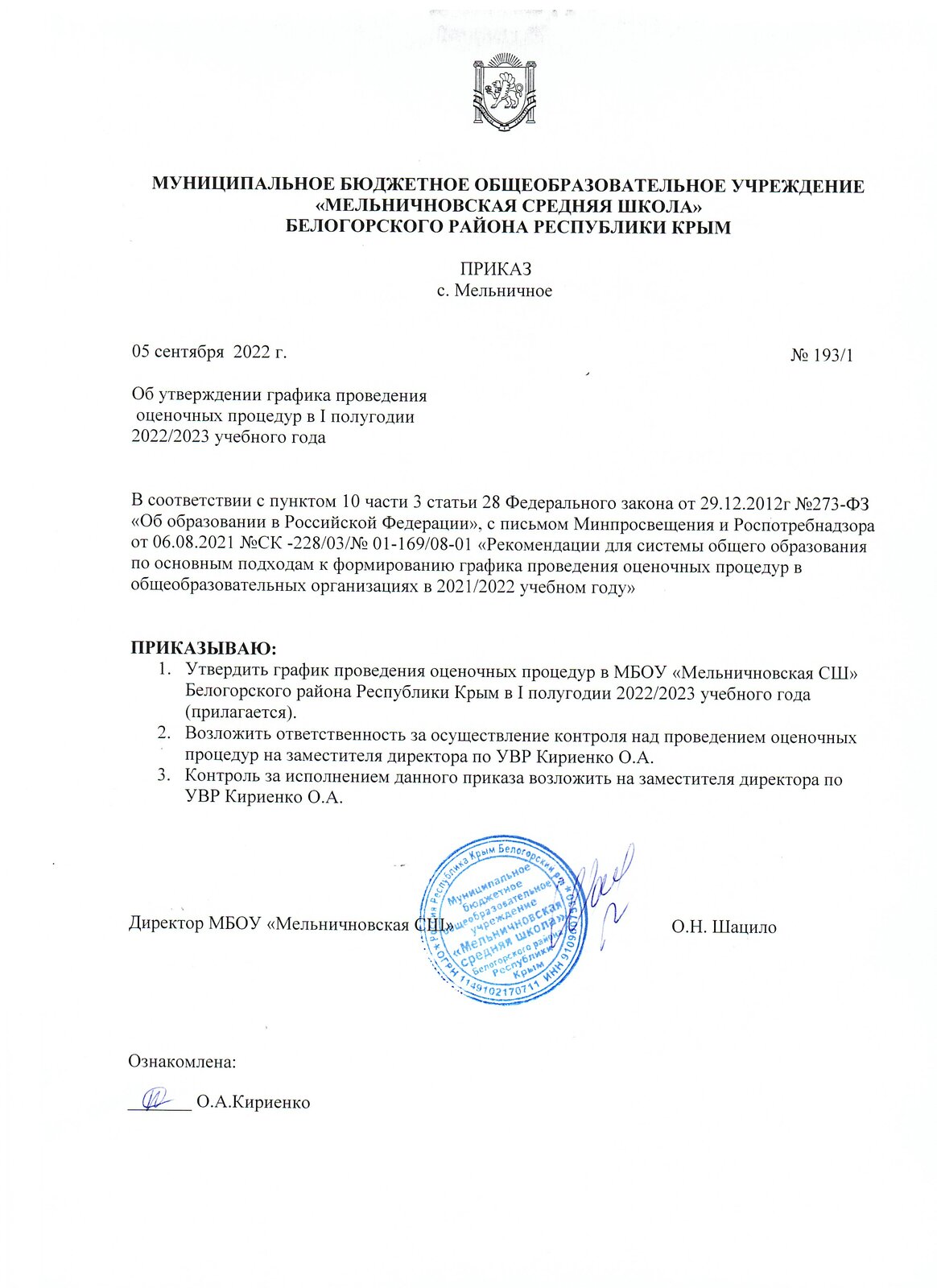 Муниципальное бюджетное общеобразовательное учреждение «Мельничновская средняя школа» Белогорского района Республики Крым